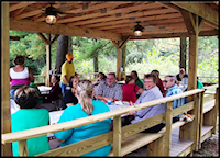 of a picnic shelter, involving the residents in a quilting club,