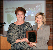 Bartholow accepts her award as Community Service Worker of the